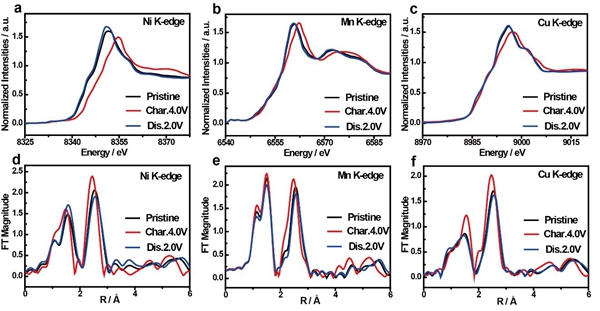 d-f)O3-NaLNMCM的Ni-K edge, Mn-K edge, Cu-K edge的扩展X射线吸收精细结构(EXAFS)。