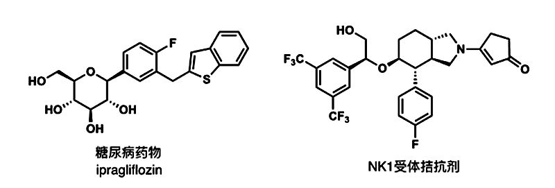 该方法可应用于合成依格列净等SGLT2抑制剂作为抗二型糖尿病药物;可以实现C-H硼化/偶联串联反应,实现色氨酸的糖基化修饰;还可以应用于人类NK1受体拮抗剂的合成中(Figure 2)。该方法在化学、药学等领域都具有广阔的应用前景。