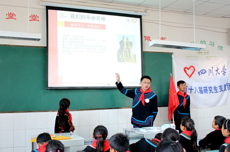 第十八届研究生支教团并担任团长,带领团队在昭觉县开展教育扶贫工作并担任团支部书记,汇集爱心物资累计近百万元,组织实施“彩虹知语堂”留守儿童关爱项目、“索玛花儿”扶贫助学计划、“百川”图书角援建计划等,事迹受到CCTV13新闻频道、《中国青年报》《NT动漫
