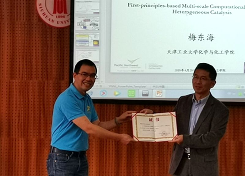 梅教授在问答环节详尽地回答和老师和同学的提问,并与在场师生进行了热烈交流。最后刘长军副教授受学院委托为梅东海教授颁发了化工大讲堂荣誉证书,此次精彩的报告圆满结束。