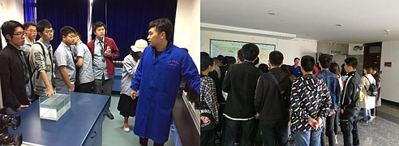 的办学历史,专业设置,学科特色等整体情况之后,林翔、李季老师带同学们参观了制药、化工专业实验室,并对相关专业的办学规模,学科特色,前沿领域等情况对学生们做了热情洋溢的讲解。左炀、魏竭老师对公用仪器平台的一些精密仪器设备的功能、原理和运行情况进行了详细讲解,并与参观学生进行了深入地交流,对他们提出的疑问给予了解答,现场气氛十分活跃。