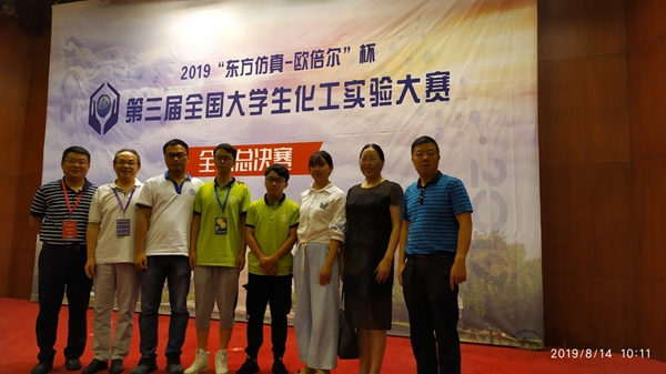 三位选手互相鼓励、齐心协力,克服台风“利奇马”带来的不良天气影响,沉着冷静,通过理论、仿真和化工实验三个赛项的考核,最终荣获全国总决赛一等奖,为学校赢得了荣誉。