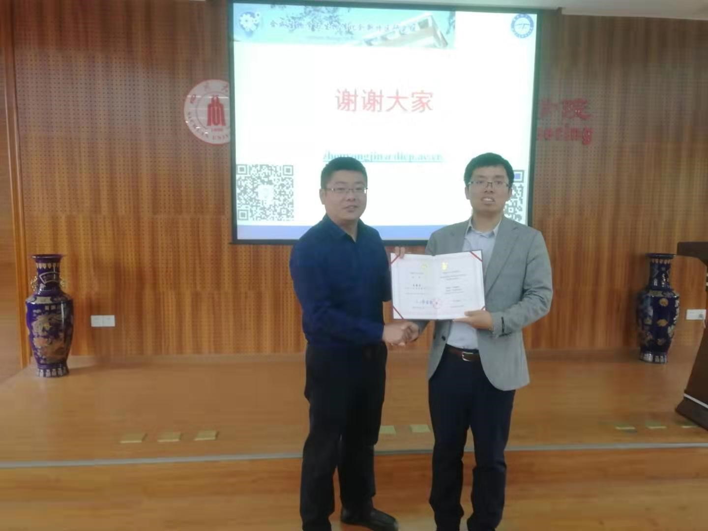 报告最后,李德富老师为周雍进老师颁发了客座研究员聘书,以感谢周老师积极参与NT动漫