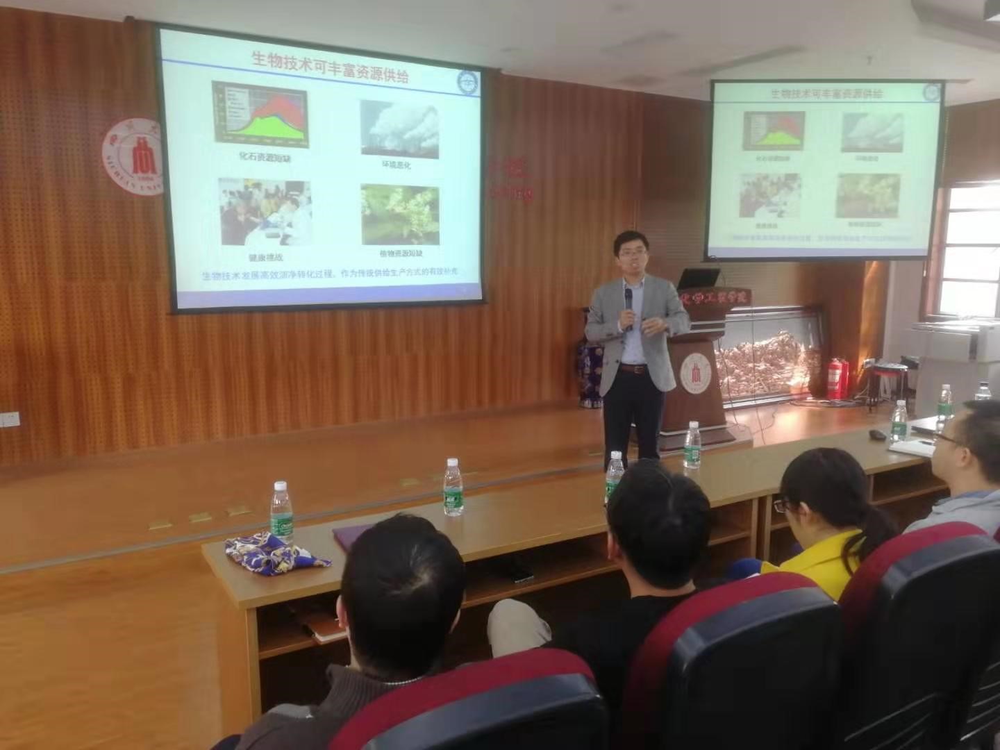 研究生带来了题为“学术论文写作与科研思维培养”的学术报告,院长助理兼制药与生物工程系主任李德富主持本次论坛。