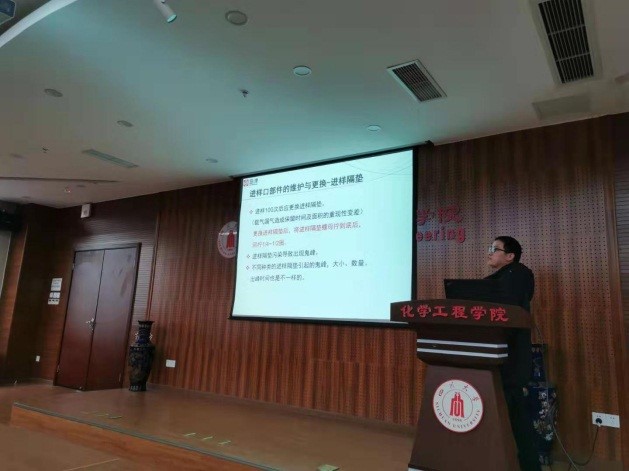 为了让全院师生更好地使用公用仪器平台的仪器,提升全院师生对相关仪器设备的使用技能,工程实验教学中心开展了一系列相关仪器设备的使用培训。12月20日上午9:00,工程实验教学中心邀请岛津公司相关工程技术人员在望江化工楼313报告厅举行了有关色谱类仪器的使用与维护方面的知识讲座,讲座由王袁隆老师主持。