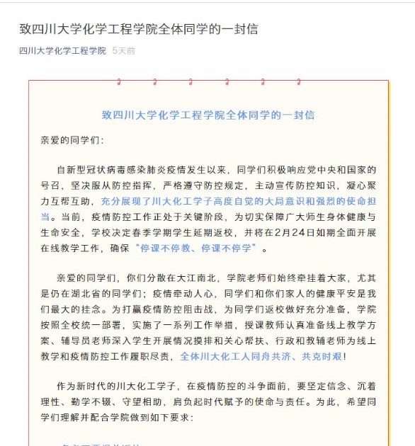 学院党委和学院工会坚决贯彻执行习近平总书记关于新型冠状病毒感染肺炎疫情防控工作重要指示精神和党中央、国务院决策部署,按照教育部、四川省有关要求和《NT动漫