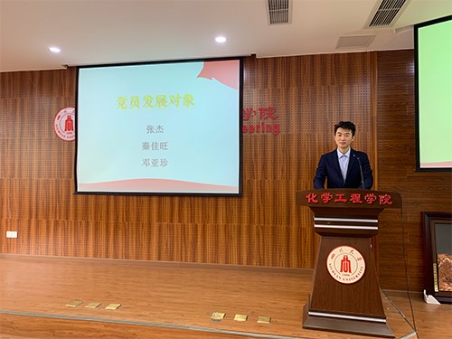 研究生膜科学与功能材料实验室党支部于2020年9月23日于化工楼313会议室召开了支部大会。本次大会由文国宇主持,主要讨论和审议接收发展对象张杰、邓亚珍和秦佳旺同志为预备党员的相关事宜。