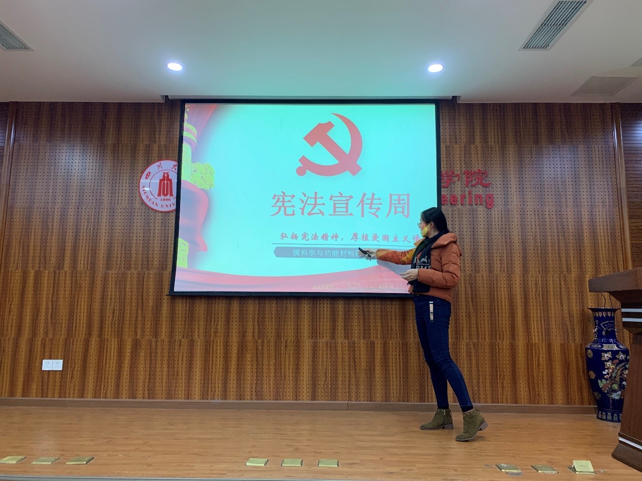 膜科学与功能材料研究生党支部在正行楼313会议室召开了“弘扬宪法精神,厚植爱国主义情怀”宪法宣传周专题微党课。本次会议由党支部书记田小玉同志主持。支委会黄庆同志负责讲解本次专题微党课内容。