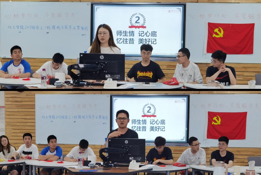 经过2个小时的茶话互动,关工委老教师们和安工1班学生们倾情演绎了化工学院安工专业里的师生情和同窗谊,活动也即将接近尾声。关工委老教师们纷纷表达了对15名毕业生的祝福和对他们即将踏上新征程的殷切希望。其中,徐赐宁老师提到“希望你们常回家看看,川大是你们学习成长的地方,也是你们的家,家里有老师和学友,是你们的亲人,盼你们有所作为,盼你们为国家效力,为川大争光”。然后,傅师申老师希望大家把学习当成一种永远的习惯,把诚信当成一种永恒的实力,把感恩当成一种永久的责任。此外,傅运清老师还讲到,“希望你们在新的岗位上继续学习党史,并做到学有所思、学有所悟、学有所得、学有所行,牢记母校‘海纳百川,有容乃大’的校训和‘严谨、求是勤奋创新’的校风,带着‘川大’烙印,永作川大人。在新的征程上,奉献你们青春实力,富民强国重任在肩,前进道路有坡坎,成功贵在坚持”。最后,梁明征老师希望同学们在全面建设现代化国家伟大实践中,奋勇争先、走在前列、建功立业!老教师们每一句流露的真情,都让台下的学子深深感受到离别的不舍与希望他们展翅高飞的祝愿。