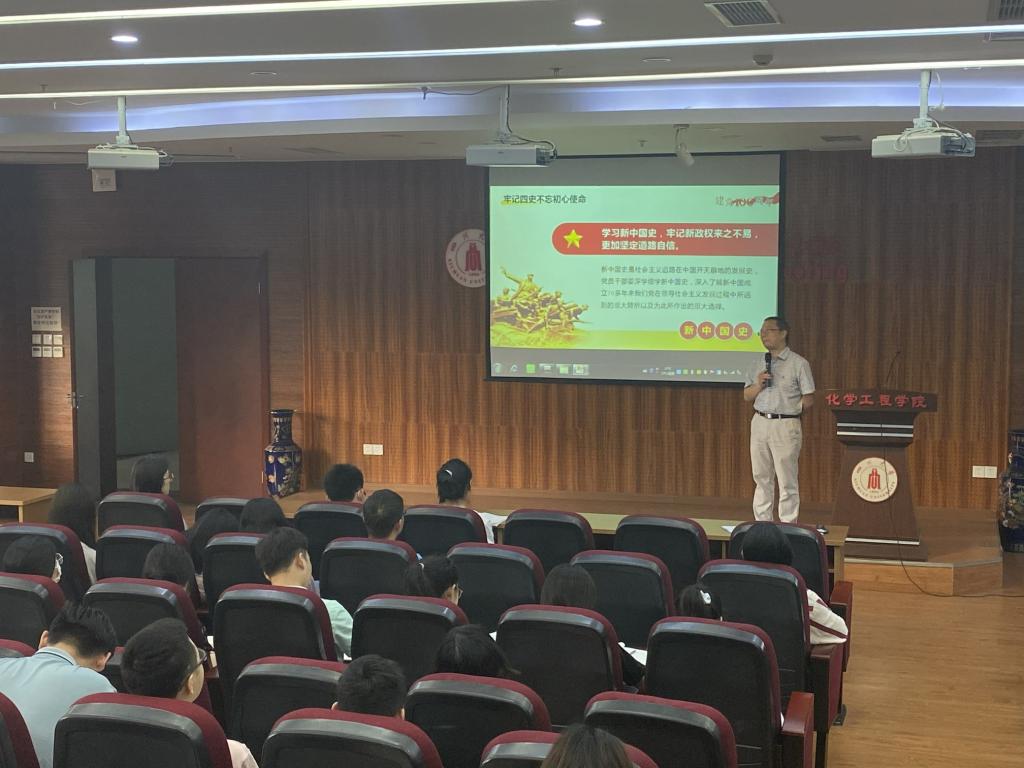 研究生磷化工党支部、研究生第一党支部和研究生分离科学党支部在化工楼313会议室成功举办了党史学习教育专题党课。此次会议由研究生第一党支书记李颖丽老师主持,化工学院副院长唐盛伟老师进行了主题为“牢记‘四史’,不忘初心使命”的党史学习教育专题党课。