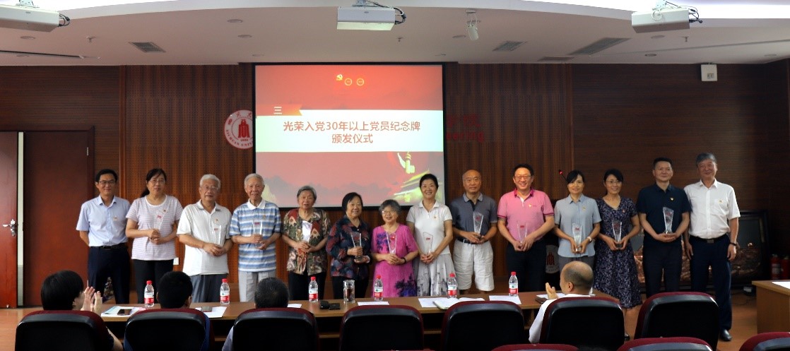 随后,大会举行了“光荣在党30年”纪念活动。庞国伟书记和赵长生院长为党龄满30年的党员代表颁发了纪念牌。