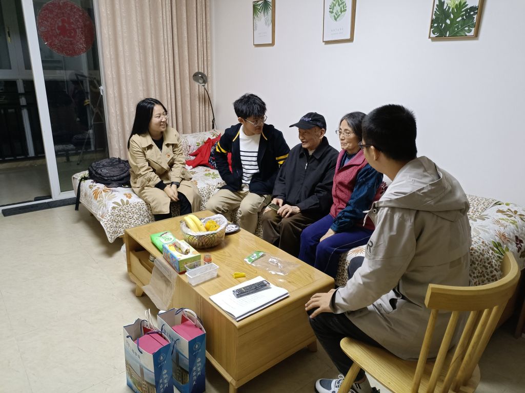 本科社区党支部的四位学生党员前往文星花园方善如、董宗玉伉俪家中探望,代表学院在重阳佳节给予老教师们关心和温暖,也代表本科社区党支部给老师们送去真挚的祝福;同时,同学们也在生活、学习和就业方面和老师们进行了积极的交流,从老师们丰富的阅历和知识中学习。