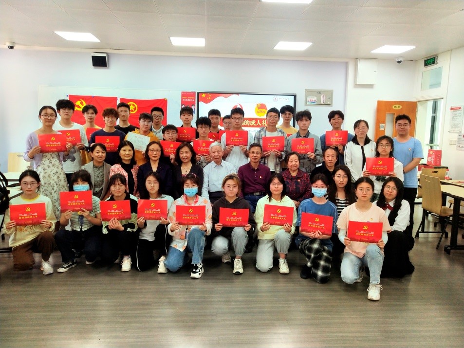 第24届支教团团兼团支书,分享自己的入党初心,提到“以先进为榜样,从小事做起,践行入党誓言,充分发挥党员的先锋模范作用,积极帮助周围的同学,微光点亮,奉献爱心……”然后84岁老党员傅运清和70岁老党员傅师申也发言表示,“作为老党员要在党性洗礼中坚守初心,动荡的年代里,无论奔向胜利的路途多么曲折,信仰依旧是让他们不惜一切代价,也要浴血奋战的那束光。加入中国共产党,是一种初心,是一种动力,更是信仰引领的赤子之心”。83岁有65年党龄的老党员梁明征老师总结到“化工青年学子作为党优秀的后备军,要做到心中有光、素履以往,不负时代,不负韶华,不负党和人民的殷切期望”。最后,老教师老党员代表学院,将学院团委精心制作的“最特别的成人礼”颁发给到场参加活动的团员骨干,学生们纷纷表示,这份成人礼很“厚重”,很特别,很不一样!
