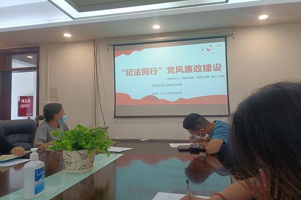 研究生生工制药党支部于望江校区化工楼235会议室举行了党课学习活动,学习内容主要为“‘纪法同行’党风廉政教育”,本次活动邀请了孙初锋院长参会,会议由党支部书记吴玟仪同志主持。