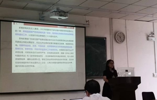 在政治学习过程中,黄青松同志领学了《全国安全生产电视电话会议》、《习近平总书记在北京冬奥会、冬残奥会总结表彰大会上的讲话》等文件,号召大家学习贯彻落实习近平总书记给中国冰雪健儿重要回信精神。接着,谢锐同志带领老师们学习了“教育部公开曝光第九批7起违反教师职业行为十项准则典型案例”,开展了党风廉政主题教育活动,强调全体教师应以案例为戒,以《新时代高校教师职业行为十项准则》为依据,成为“四有”好老师。