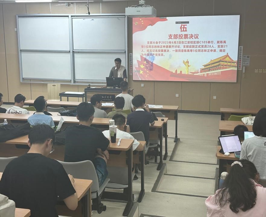 本次会议严格按照各项相关程序规定执行,秉承公开透明的原则。会议第一项,由陈禹、周涵皓等五位同志依次进行自我介绍,并总结一年来的进步与不足,并提出了自己的整改措施,端正了入党动机,坚定了自己入党的信念,并向党组织提出申请,申请成为一名合格的中国共产党正式党员。