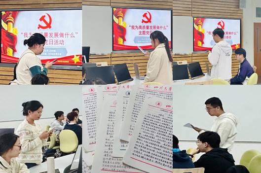 本科2020级党支部和本科社区党支部在江安一教A108联合开展组织生活学习和“我为高质量发展做什么”的主题党日活动,并围绕学习内容进行了深入讨论。此次活动由本科2020级党支部书记雷金凤老师主持,本科社区党支部付率老师和两支部全体学生党员参加了此次活动。