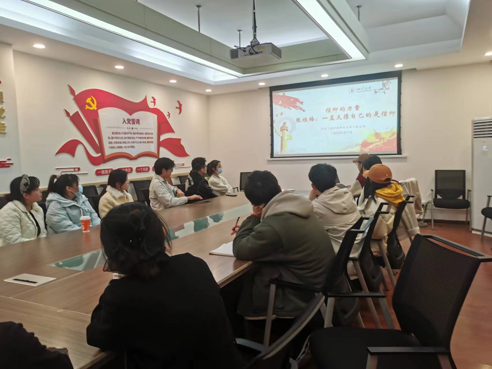 研究生第六党支部在望江校区化工楼227会议室开展了“信仰的力量”主题党会。会议由党支部书记李艳静同志主持,王娜同志作汇报。