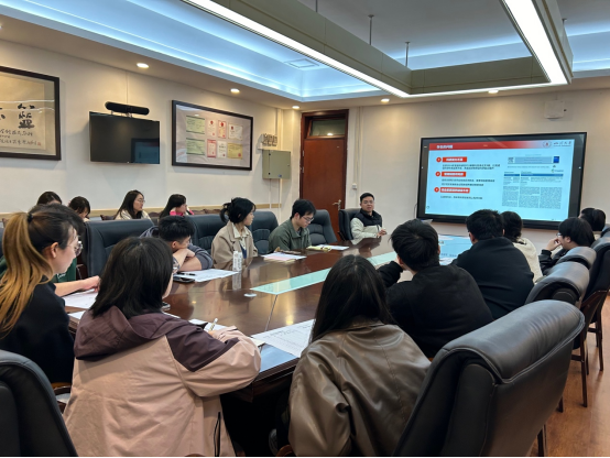 会议的最后环节是学习《教育强国建设规划纲要(2024-2035年)》。支部书记邓磊带领全体党员深入研读纲要内容,从教育强国建设的总体要求、战略任务到保障措施等方面进行了详细解读,号召党员们要在日常学习和工作中积极践行纲要精神,展现研究生党员的责任感和使命感。