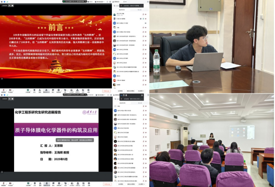 2025年5月9日下午,为弘扬五四精神,展现青年学子的时代担当,NT动漫 研究生第六党支部、本科社区党支部和本科雏鹰党支部与清华大学化工系化工研三第2党支部、天津大学化工学院2023级硕士生生化第二党支部、南开大学化学学院高分子所第六党支部和化学系无机研究生第一党支部四校四院七支部共同开展了“五四精神,化炼青春”联合主题党日活动。活动采取线上线下相结合的方式,围绕五四精神、青年担当和学术创新展开深入交流。