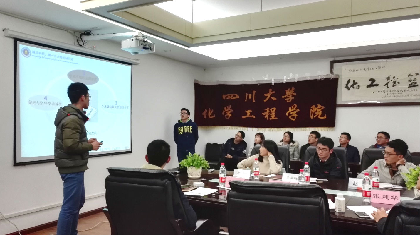 的研究生党支部分别展示了自己的PPT。他们的PPT演示,有的激情澎湃、热情洋溢;有的绘声绘色、图文并茂;有的引经据典、旁征博引,以不同的方式诠释了各自对十八届六中全会中关于“诚信”的理解。但相同点是都指
