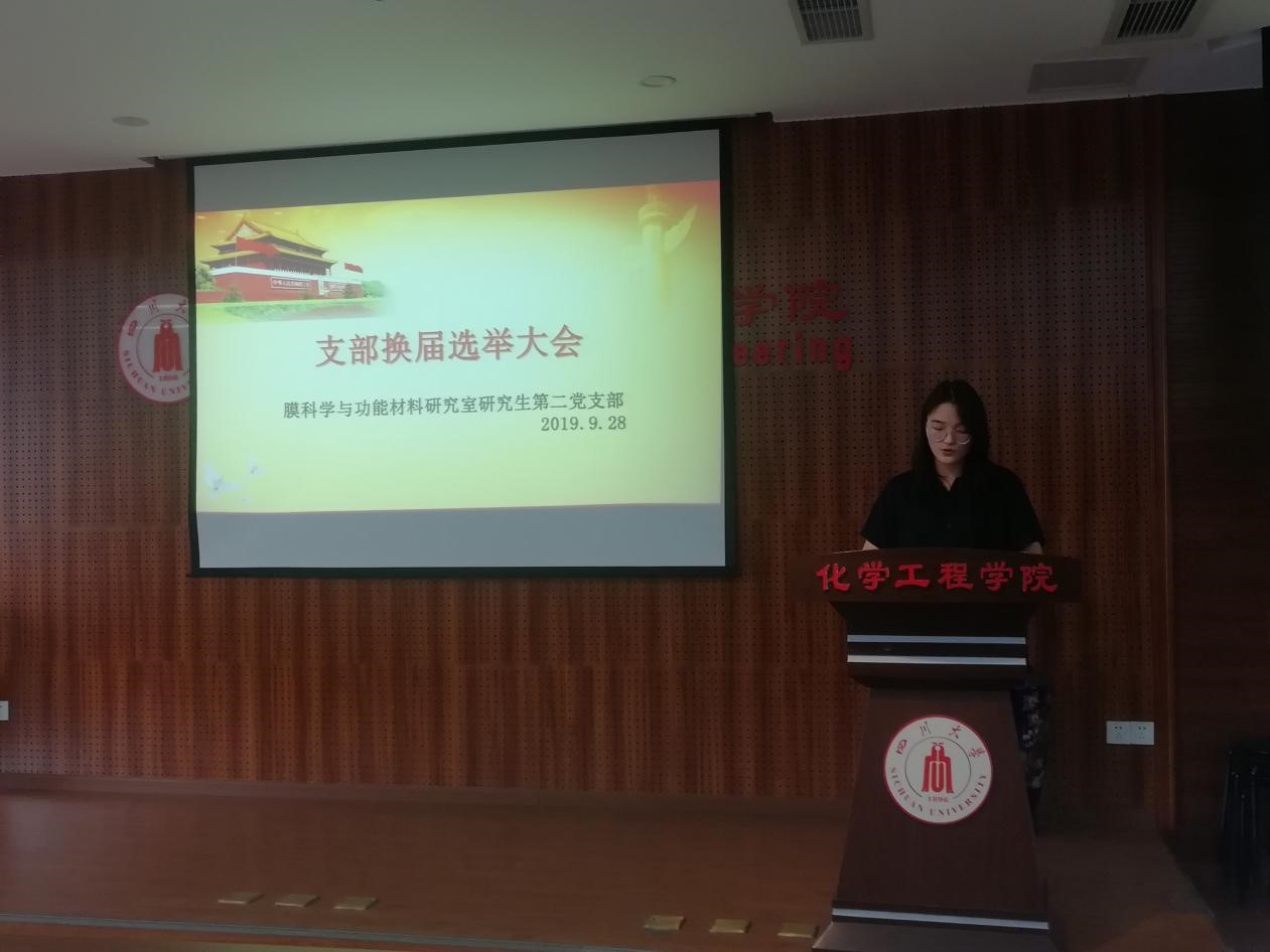 2019年9月28日下午16:00,膜科学与功能材料研究室研究生第二党支部在化工学院313召开支部大会,选举产生新一届支部书记、委员。此次会议由支部书记尹微虹同志主持。