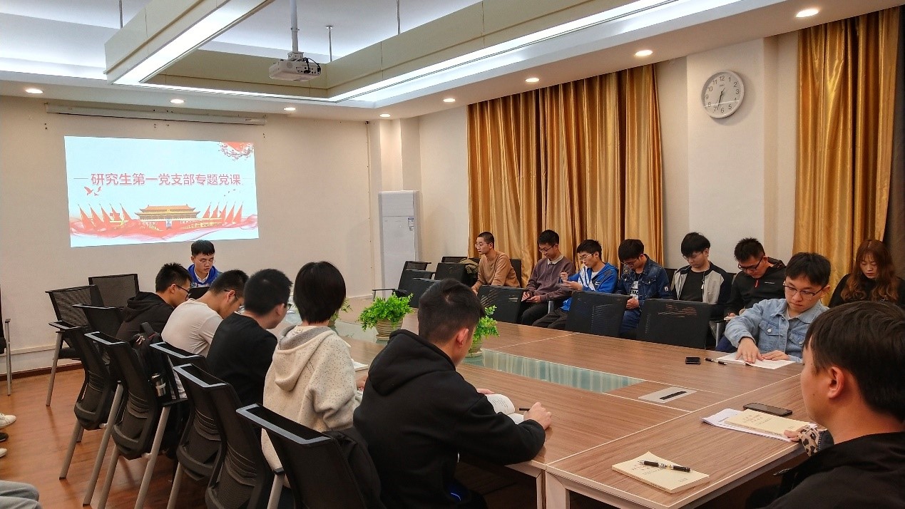 化工学院研究生第一党支部在化工学院227会议室召开了“谈学生党员的初心和使命”专题党课。此次会议共有36位同志参加,其中正式党员20名,预备党员5名,积极分子11名。本次专题党课由党支部副书记王勇同志主持召开。