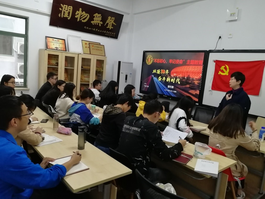 学院党委副书记姜利寒以《壮丽70年,奋斗新时代》为题为支部党员主讲党课,从政治、经济和文化三个方面来回首70年壮丽的奋斗历程,时刻告诫党员牢记中国共产党领导是中国特色社会主义最本质的特征、是中国特色社会主义制度的最大优势。