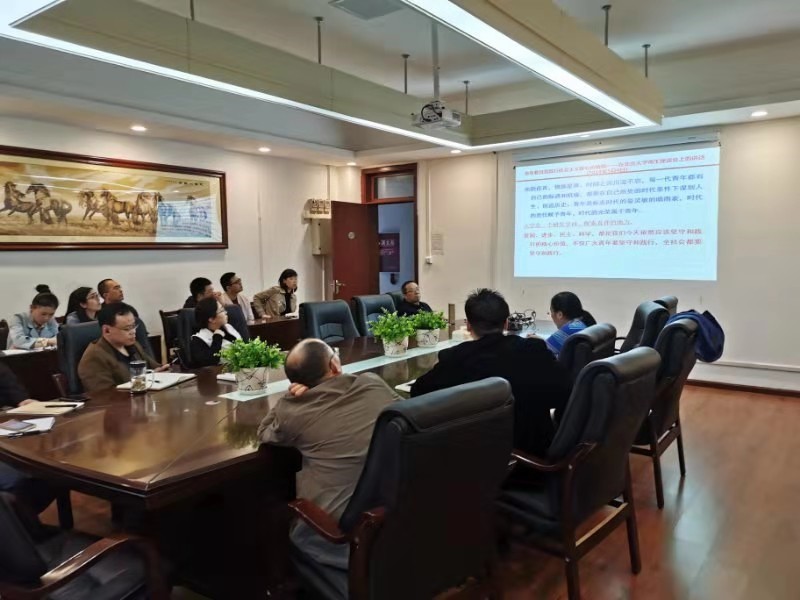 唐盛伟副院长以《坚持立德树人根本任务,培养一流化工人才》为主题,带领支部党员一起学习习近平总书记关于教育工作的重要讲话精神,教育引导广大教师党员加强师德师风建设,努力做到“四个相统一”,做好“四个引路人”、成为“四有”好教师。
