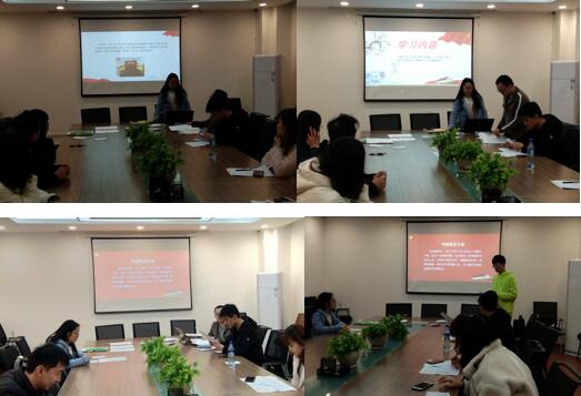 227会议室,召开党支部集体学习大会暨党员转正大会。会议主要以PPT讲解以及网上参观70周年大型成就展览的方式进行,由党支部书记贾璐菡同志主持并带领各位支部成员进行学习。在会议正式开始前,组织委员把余德同志确认到场人数,此次党支部大会支部成员应到20人,实到17人,3人请假。