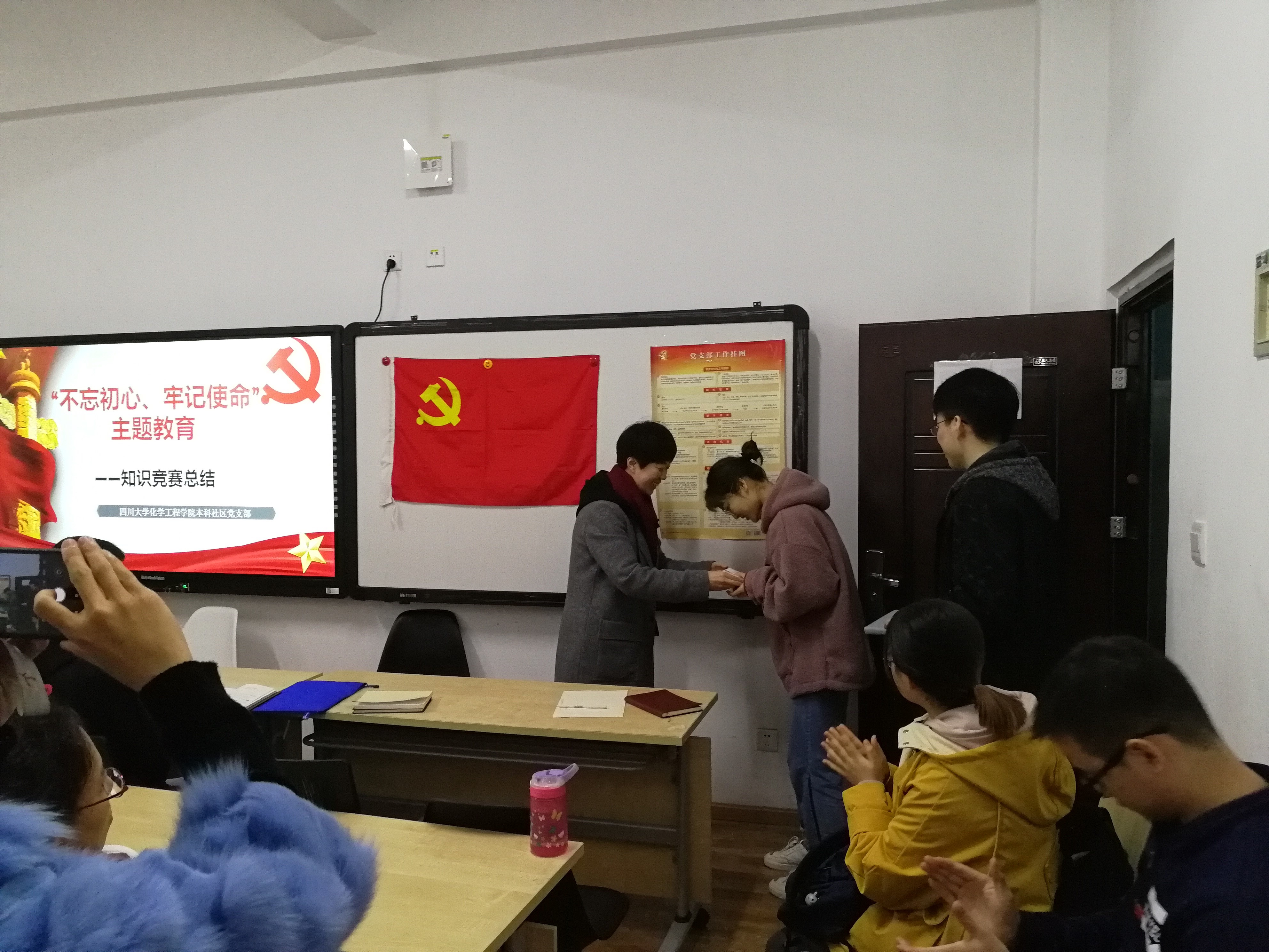 本科社区党支部在江安校区三舍活动室举行庆祝“不忘初心 明确责任担当,牢记使命 争当优秀党员”的知识竞赛颁奖仪式。NT动漫