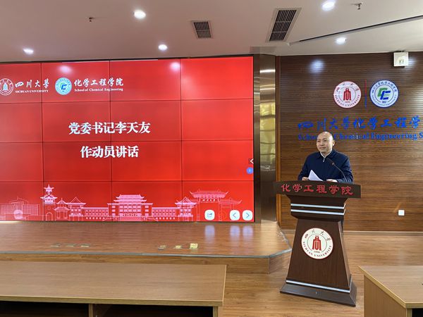以习近平新时代中国特色社会主义思想为指导,深入贯彻党的二十大精神,胸怀“国之大者”、“校之大事”,强化党建与事业融合发展,聚焦培养一流人才、建设一流师资队伍和产出一流科研成果,推进了一流学院建设取得突出成绩、重要突破。他着重分析了学院发展存在的主要问题和短板,详细介绍了学院2023年度主要任务、重要指标和工作举措。他指出,全院师生要加快一流化工学院建设步伐,团结一致谱写学院高质量发展新篇章。