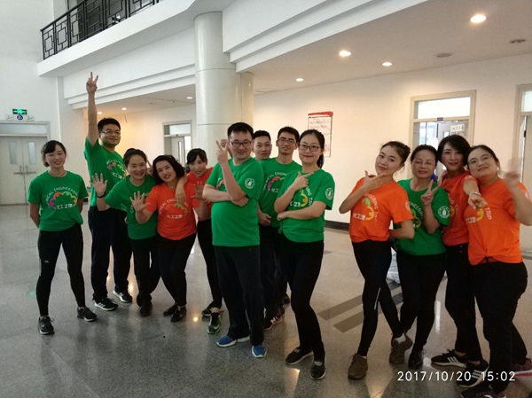 秋季运动会开幕式的精彩节目之一。为响应党的十九大提出的广泛开展全民健身活动、加快推进体育强国建设的号召,院工会精心做好本次比赛各项筹备工作,广泛动员、积极组织各科室、系别的老师参加。十一长假过后,拥有十多名男女教职工的“美丽化工”代表队正式成立。队伍涵盖了老、中、青三代一线教职工,既有数次参赛经验丰富的老队员,也有充满热情投身比赛的新队友,大家都表现出了昂扬的精神风貌,时刻准备着为化工争光。