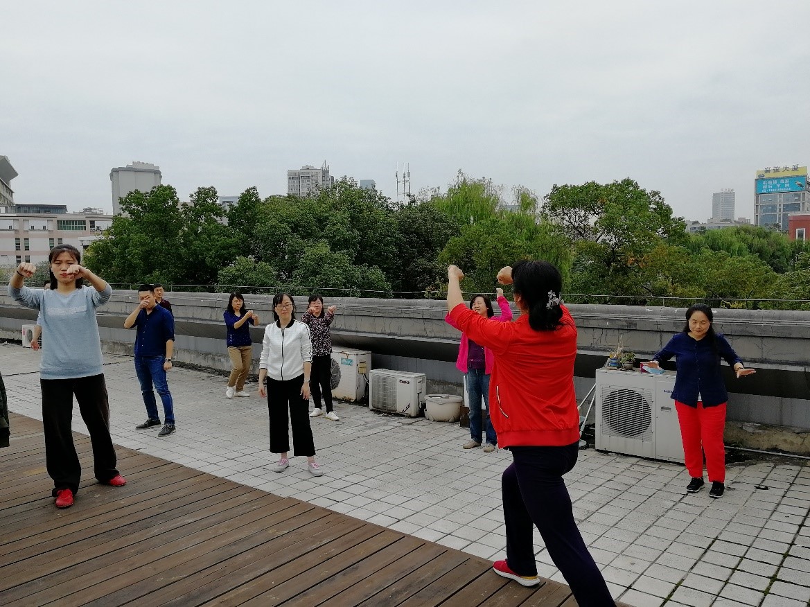 为了更好地普及中华传统体育项目,激发爱国主义精神,增强教职工的健康意识和身体素质,真正使教职工了解太极拳、热爱太极拳,在繁忙的教学科研之余加强体育锻炼,学院工会特别邀请了成都体育学院的艾泽秀教授对学院参赛老师进行了培训和指导。参赛老师们在繁忙工作之余,积极投身到太极拳学习之中。接连的培训强度不仅没有削弱大家的意志,反而使大家越发喜欢上了这项传统体育项目。白鹤亮翅、海底针、云手,一招一式中不仅有着对太极阴阳的把控和理解,更有对中国传统文化的敬佩和热爱。一段时间的训练下来,老师们进步明显,得到了教练的充分肯定。