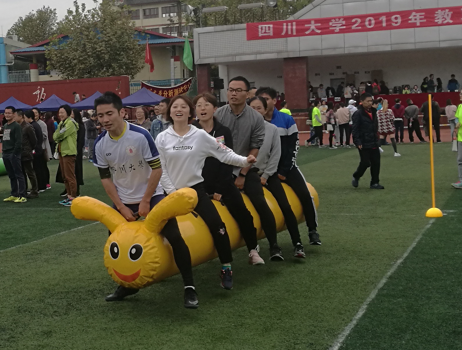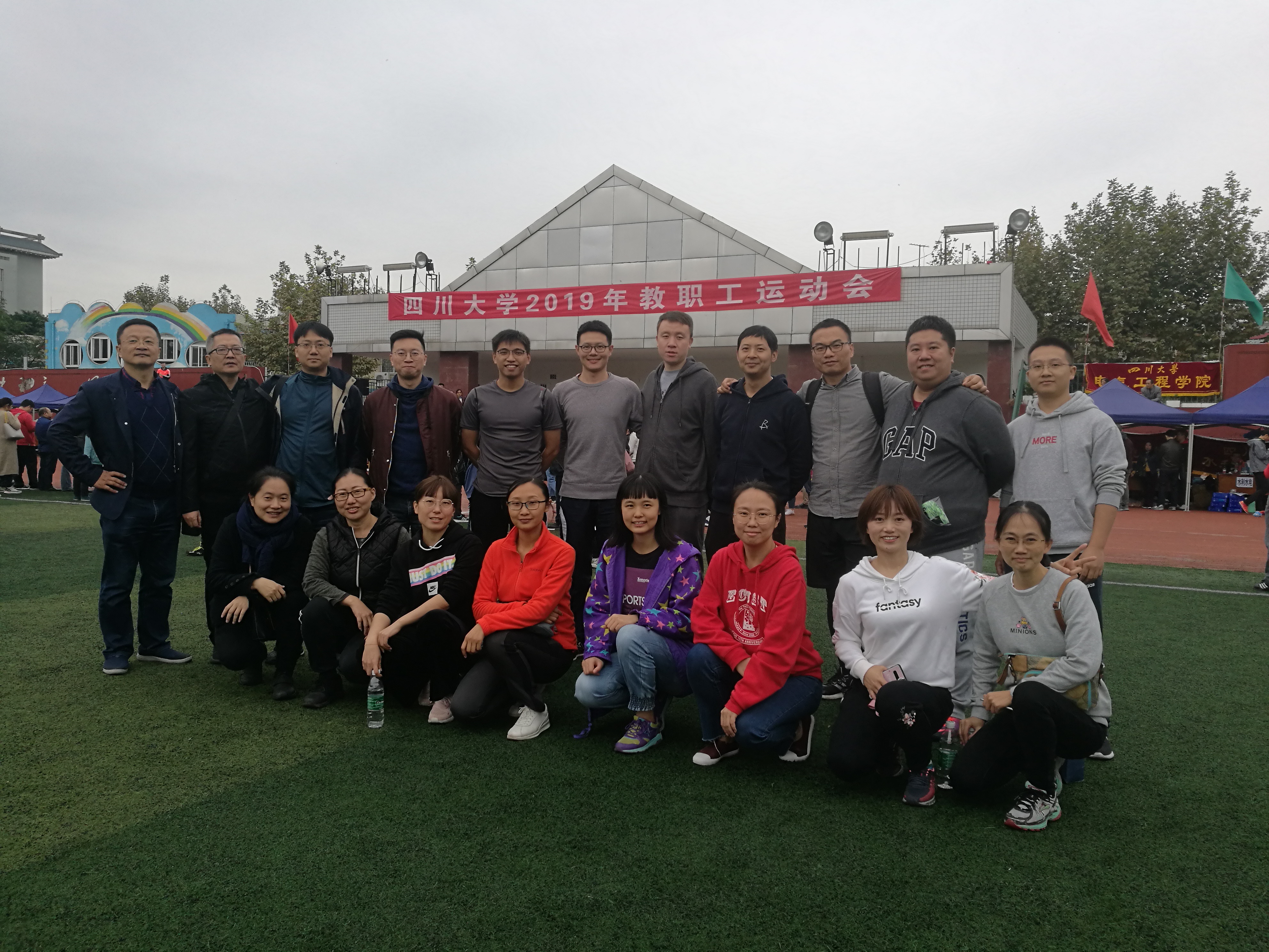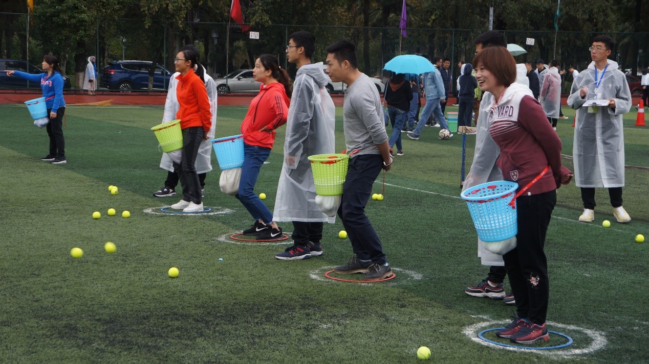 2019年教职工运动会的各项准备工作,分阶段的精心组织,保证了包括教职工田径比赛、教职工趣味活动比赛等各项比赛的顺利进行并取得了非常好的比赛成绩。虽然现场风大雨大,但老师们的运动热情丝毫没有减退。大家充分发挥奥林匹克精神,泥泞的沙土里留下了大家坚实的脚印。满是水坑的赛道上,大家毫不畏惧的风里拼搏。集体跳绳比赛上,即时脚滑跌倒也一定坚持到最后一秒。经过大家的不懈努力,学院获得了包括毛毛虫比赛第3名、男子跳远比赛第8名和集体绕杆射门第11名的好成绩。学院党政办、学院工会委员及部分工会小组成员在运动会现场组成后勤服务队,积极主动为参赛队伍呐喊助威,做好后勤服务工作。