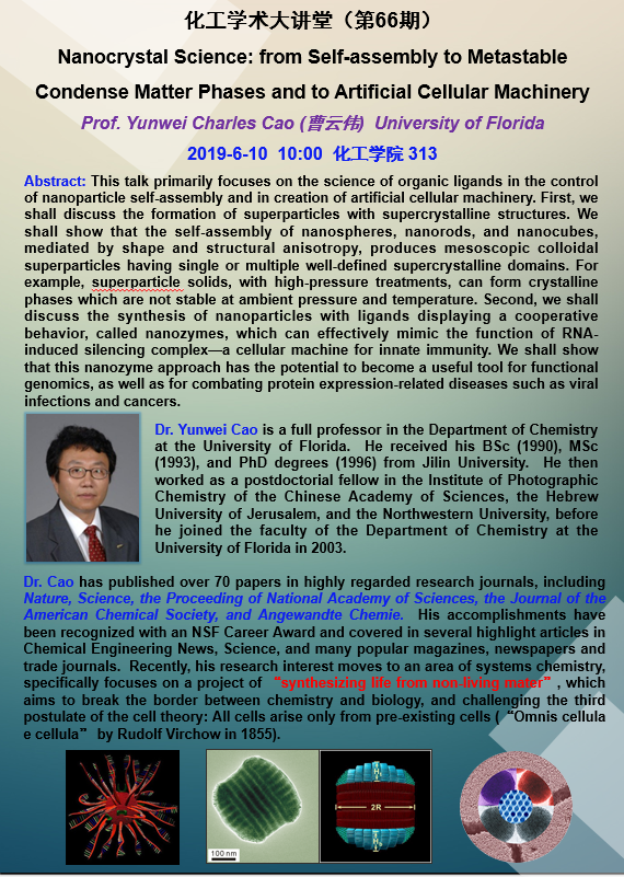“化工学术大讲堂”系列高端学术报告学术报告(第六十六期)
