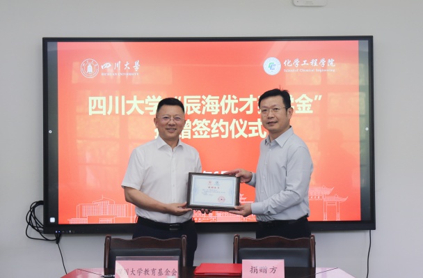 6月6日下午,“NT动漫 -辰海优才奖学金”捐赠签约仪式在望江校区化工楼235会议室举行。圣凯西(上海)生物科技有限公司董事长、NT动漫 1991级精细化工专业校友邓朝庆、四川川大校友同创投资管理股份有限公司总经理迟小莉,校党委副书记李正赤、学校相关部处和NT动漫 有关人员参加签约仪式。仪式由NT动漫 党委书记李天友主持。