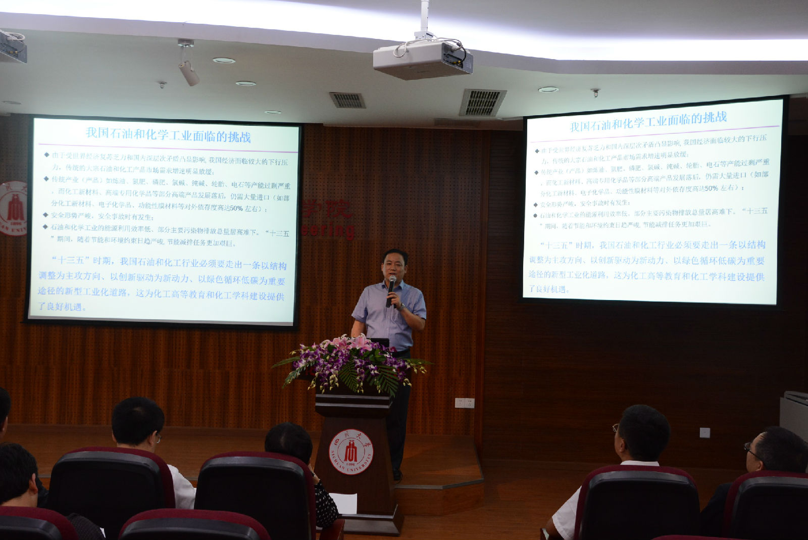 接着,NT动漫 院长褚良银教授作题为“百廿川大,甲子化工”的主题报告,他在报告中向各位来宾简要介绍了NT动漫 的历史沿革、历次合校情况,回顾了化工学院的建院历史,重点介绍了化工学院的发展现状和取得的丰硕成果。他期盼在学校和校友的支持下,化工学院能发展的越来越好。