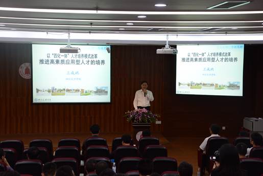 随后,正式将进入主题发言阶段。学院82级校友、国家工商行政管理总局王江平副局长就“大学生创业与创新”做了主题演讲,他指出“知识推动创业,创新驱动发展”,他的成功离不开川大的支持,希望同学们能够学会申请学校的天使基金,借学校之力来解决创业难的问题。84级化工校友、美国发明家学会Fellow、化学工程师协会Fellow、华盛顿州立大学王勇教授就“化工高等教育国际化”进行主题演讲,他希望化工学子注重团队合作精神和表达能力训练,立足基础,面向工业,服务社会。83级物理化学专业校友、深圳海普瑞药业股份有限公司副总裁李坦女士结合海普瑞集团的创业历程,就“创新创业”做主题演讲,对年轻学子提出了许多良好的建议,提醒大家“要想超越其他人,就需要超出常人的行动力。”