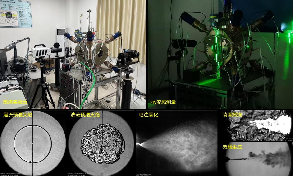 面向内燃机、航空燃气涡轮发动机等动力装备中的燃烧过程,着力提高发动机动力性能和实现低排放燃烧。利用高速纹影成像、PIV流场测量等光学诊断方法,研究燃料射流雾化、层流/湍流火焰、燃料裂解结焦、超临界态-裂解态燃烧等过程,聚焦与燃料燃烧组织相关的基础科学问题,支撑燃料在发动机中的应用性能评价需求。