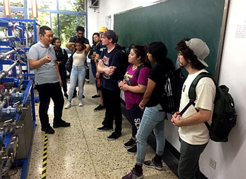 7月4日下午,阵雨送凉。在国际周志愿者同学的带领下,来自美国西密歇根州立大学造纸工程、化学工程与机械工程的14位本科生同学来到美丽的江安校区化工学院工程实验教学中心参观交流。