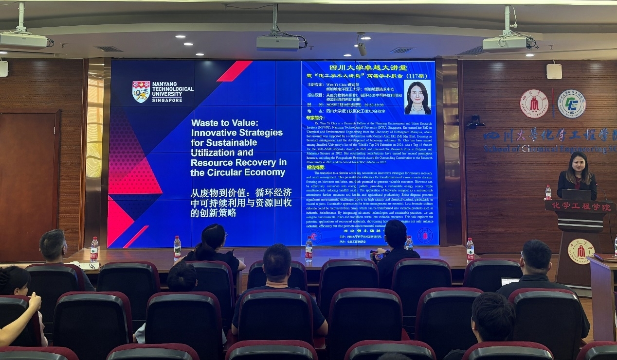来自新加坡南洋理工大学的Wen Yi Chia研究员为参会师生带来了题为“从废物到价值:循环经济中可持续利用与资源回收的创新策略”的学术报告。Wen Yi Chia在南洋理工大学环境与水研究中心工作,也隶属于新加坡膜技术中心,主要从事生物废弃物资源化利用和膜技术相关研究工作。