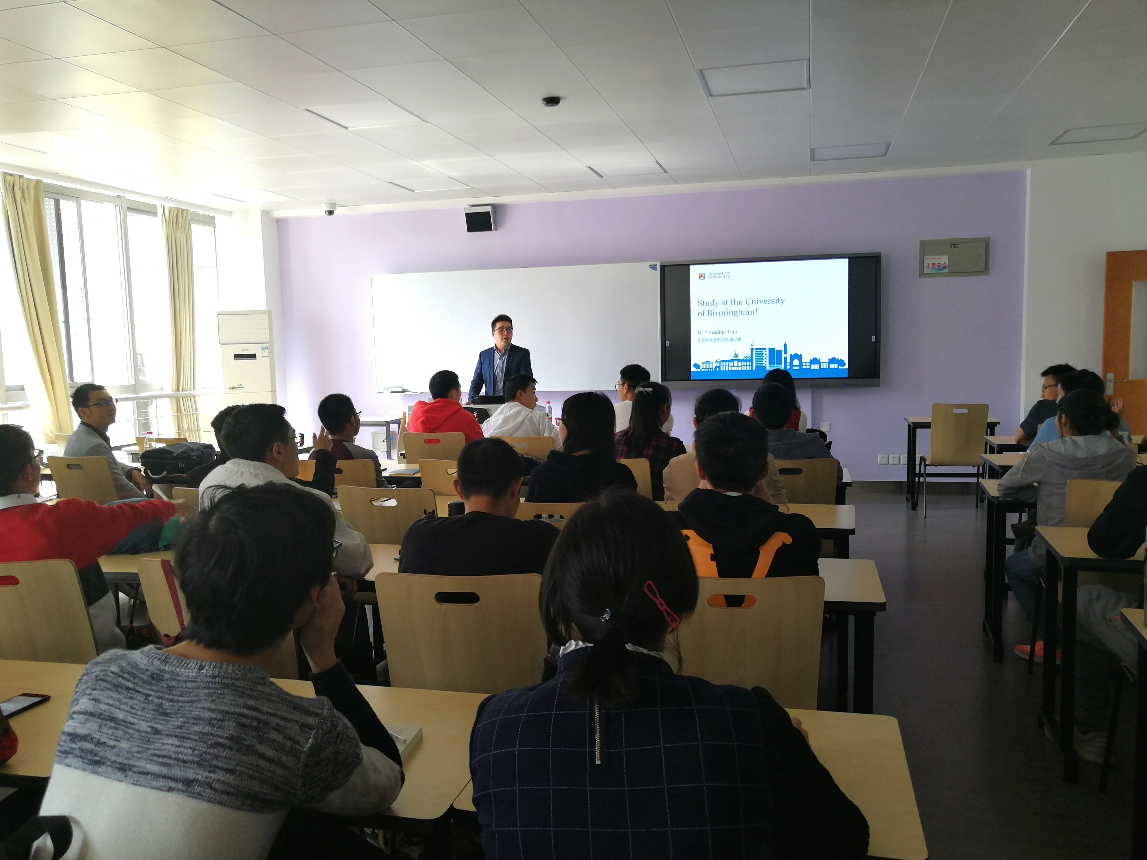 本科生举行了3+2、2+2联合培养项目的宣讲会。伯明翰大学招生专员田忠北博士为同学们作了精彩的宣讲。