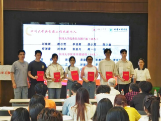共青团工作先进集体和个人获奖名单,并邀请两位老教师为获奖代表颁发荣誉证书。