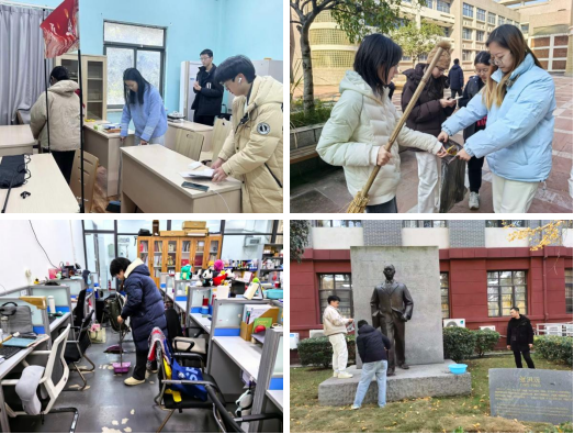于2024年12月31日下午组织了“迎新年·齐劳动·展新颜”校园卫生清扫活动。此次活动在江安校区和望江校区同步进行,学院师生踊跃参与,为营造干净、整洁、有序的校园环境贡献力量,喜迎新年。
