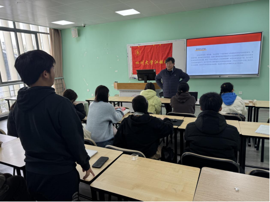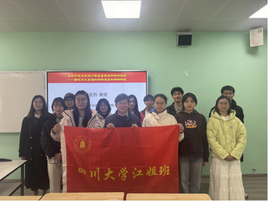 江姐班和文学与新闻学院江姐班在江安校区综合楼B104开展“践行文化自觉,铸就文化自信”江姐班理论学习会。有幸邀请马克思主义学院教授邓宏烈老师与两学院江姐班学生一同学习交流。