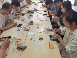 活动伊始,现场通过知识分享的形式,从文化和习俗两方面系统解构了端午佳节的起源脉络、精神内核与民俗意蕴,带领同学们在历史长河中感知传统文化的厚重底蕴。随后的手工教学环节,通过图片和小视频的形式向同学们展示了五彩绳编织与香囊缝制的传统技法。同学们热情得进根据教学内容进行自由创作,通过实践的形式,在工业时代的快节奏中重拾手作温情,于一针一线中体悟先民智慧,使千年技艺成为连接科研与生活美学的纽带。