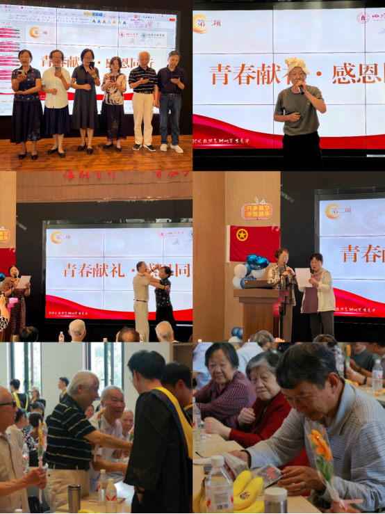 学生们将亲手制作的向日葵扭扭花,赠予老教师们,并郑重献上四年活动的相册。