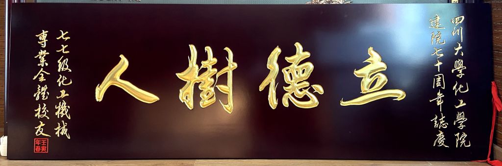 在喜迎NT动漫 建院70周年之际,作为曾经的学子,现在的校友,学院1977级化工机械专业校友为母院送上了“立德树人”的匾额,以此表达对曾经求学生涯的怀念,以此表达对学弟学妹的敦敦教诲,以此表达对川大化工学院未来发展的殷切期盼。