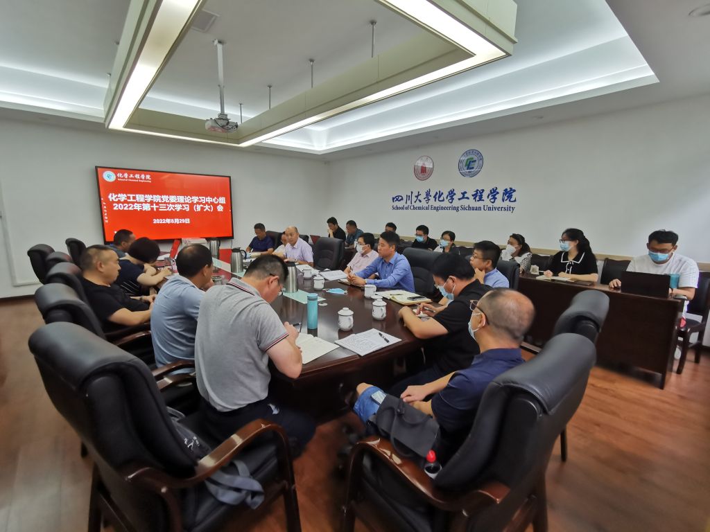 在望江校区化工楼235会议室组织召开2022年第十三次党委理论学习中心组学习(扩大)会,深入学习贯彻习近平总书记在省部级主要领导干部专题研讨班上的重要讲话精神和毛主席经典著作《党委会的工作方法》。学院全体领导班子成员、党委委员、纪委委员、工会主席、专职组织员、系(基地、中心)主任、教工党支部书记、院长助理和科级干部等参加会议。会议由学院党委书记李天友主持。